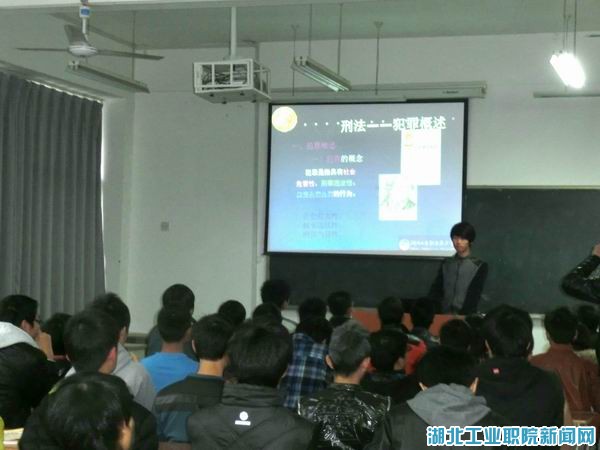 为了普及法律知识,使同学们真正能够知法、懂法,守法、用法,在2013级汽检5班班长张雨飞的倡导下,12月2日晚7点,在汽车工程系5202教室,举办了一场以《中华人民共和国刑法》为题的主题班会讲座,主题班会讲座由张雨飞同学主持。