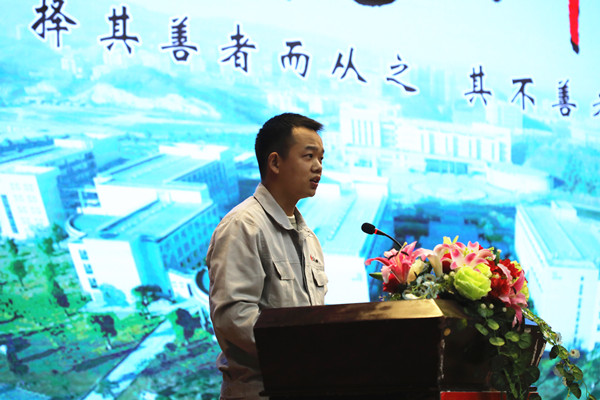“张龙老师身上所体现的爱岗敬业的职业道德、不断学习的工作态度和敢为人先的生活追求,是我们学习的榜样。”“在这个飞速发展的时代里有无数的诱惑,正因为此,我们更要坚定自己的内心,用一颗恒心去铸造出一颗匠心,像张龙老师一样,实现自己的理想和价值”......湖北亨运集团汽车销售服务有限公司员工、PP电子游戏网站2018届毕业生吴永恒、PP电子游戏网站2019级学生潘昌越分别以《我眼中的张龙老师》、《以热爱为初心 用恒心铸匠心》为题进行了主题宣讲,分享了学习张龙老师事迹的感想体悟。