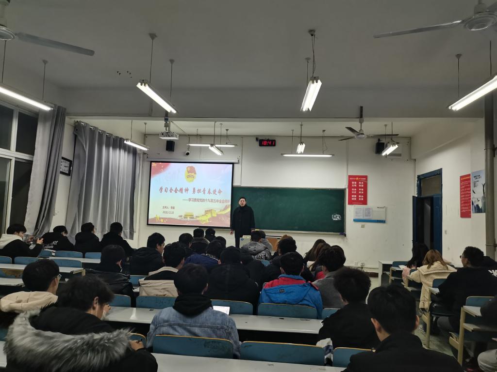 为深入学习贯彻党的十九届五中全会精神,切实把思想和行动统一到全会精神上来,引导广大师生奋力拼搏,为祖国发展贡献青春力量,12月22日晚,PP电子游戏网站分团委在5306教室,此次团课由分团委书记李路老师担任主讲,分团委学生会全体学生干部,2019级、2020级各班团支书参与主题团课。
