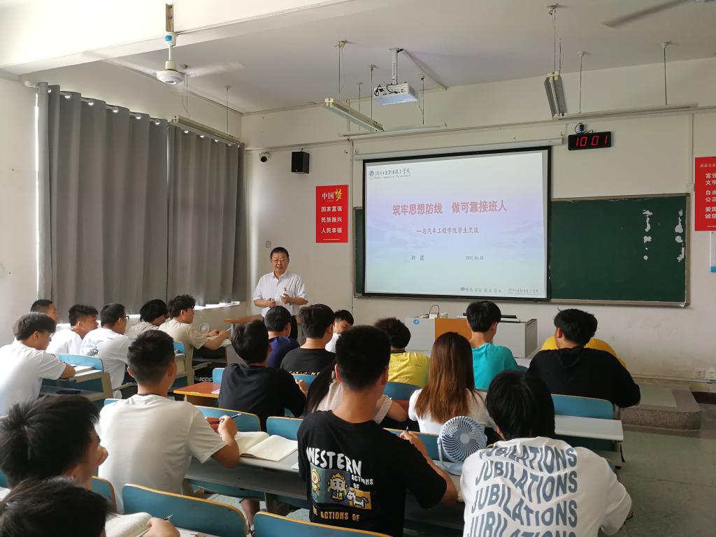 新闻网讯(通讯员 玉声)6月23日,校党委委员、副校长叶波在PP电子游戏网站5302教室为2020级新能源汽车技术专业学生讲授《筑牢思想防线 做可靠接班人》专题形势与政策课。马克思主义学院、PP电子游戏网站等相关部门负责人及辅导员参加听课。