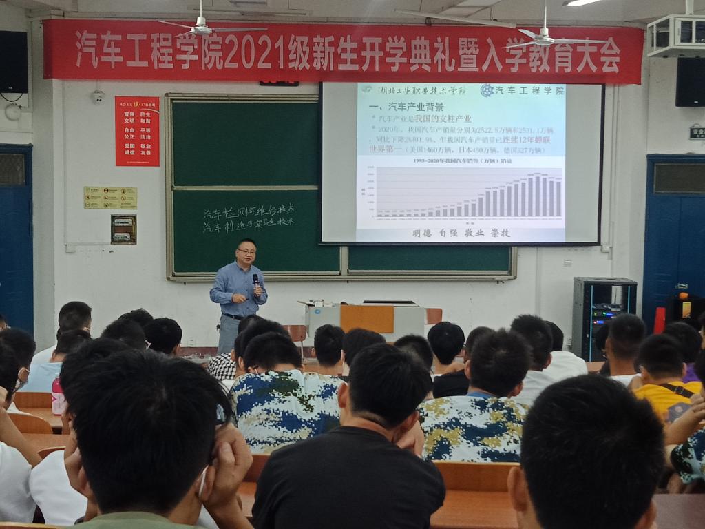 学院党总支书记张玲致欢迎词,她对2021级新同学们提出殷切的希望,希望同学们学会主动适应、学会自我管理、学会交流沟通、担当作为,回报社会,并表达了学校对全体同学的深切关爱和热烈欢迎。院长张健从汽车产业背景、汽车发展趋势、PP电子游戏网站专业概述及建设规划等方面给同学们做了详细的介绍,鼓励同学们要热爱专业、勤学苦练、学有所长。副院长余元强针对同学们感兴趣的五个特色订单班的设置、教学、就业等方面进行了专题讲解,希望同学们结合兴趣理想选好特色专业、学好专技特长。各专业负责人从本专业的课程设置、知识结构、技能水平、就业优势等方面,全面向同学介绍了各专业的发展方向和职业规划,引导同学们了解专业、热爱专业、学好专业。下午,2021级新生辅导员分别为新生做了适应性教育及疫情防控专题提醒。