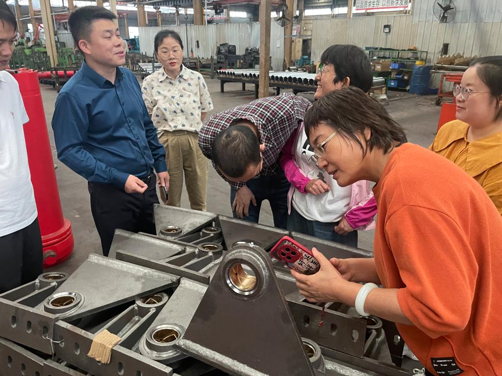 在湖 北万邦液压装备有限公司,PP电子游戏官网教师听取了企业负责人张建亮关于企业生产经营、科技研发、技术难题等情况介绍,参观了生产车间。对于企业提出的产品轻量化、装备自动化、数字化赋能等技术需求,教师团队给予了现场指导,并与公司技术人员进行了深入交流和技术对接,表示将根据企业的需求后续跟进服务,助力企业创新发展和技术进步。交流活动结束时,企业负责人深表满意和感谢,并就后续校企合作达成意向,接下来将邀请学院教师对企业员工开展培训和技术指导。