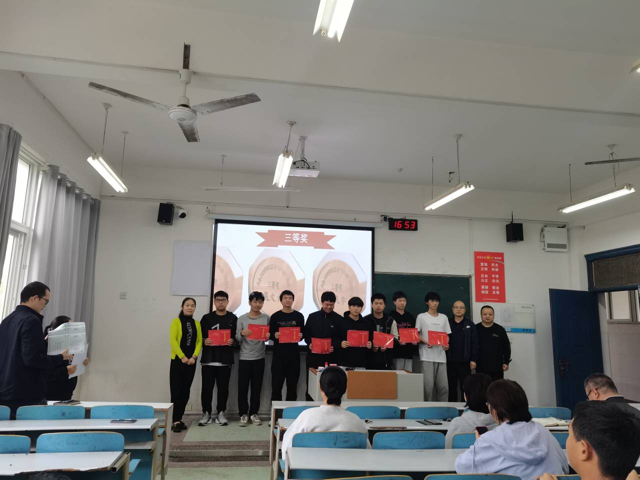 赛后举行了颁奖仪式。由陈自兵老师对本次参赛同学的成果进行总结和点评,张健院长做总结发言。张院长指出,绘图技能是汽车专业学生必备的一项核心技能,对未来职业发展起到重要的支撑作用,同学们一定要用心学好。希望同学们能以此次竞赛为契机,重视对专业核心知识和能力的学习,不断提升自己的专业技能水平。