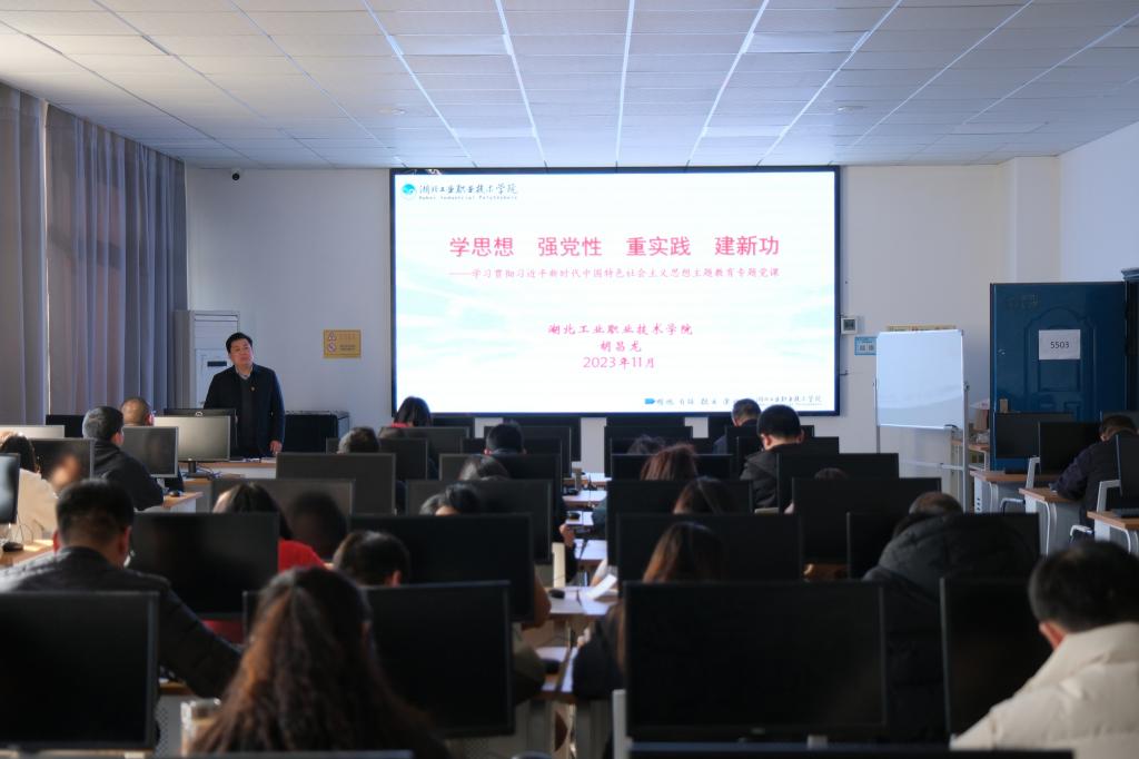 (通讯员:李霞)为深入开展学习贯彻习近平新时代中国特色社会主义思想主题教育,11月14日下午,PP电子游戏网站和机关三支部在5505教室联合开展11月份支部主题党日,校党委委员、副校长兼宣传部长胡昌龙讲授主题教育专题党课。