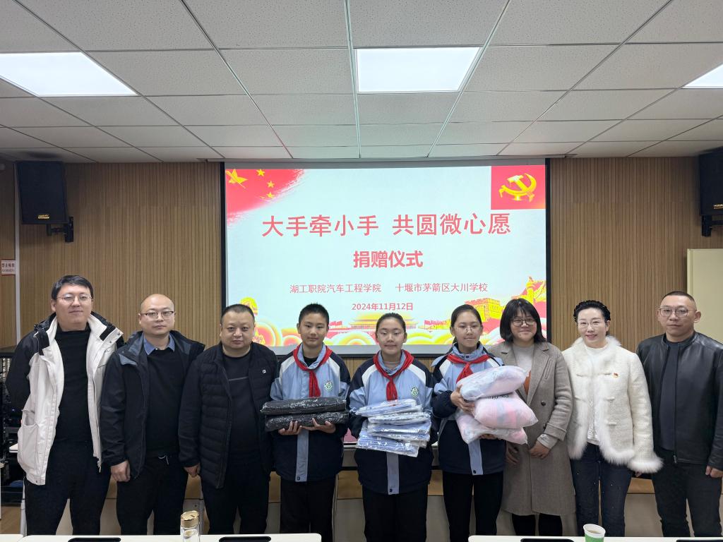 随后,大川学校副校长吴和春向老师们简要介绍了该校的情况。作为十堰市茅箭区大川镇的一所农村学校,教师们多年来勇做乡村教育的“守望者”,扎根农村,坚守岗位,教书育人,生动诠释了基层教育工作者的无私奉献、勇于担当的优秀品质。接着,PP电子游戏网站为大川学校孩子们奉献爱心,进行了“大手牵小手、共圆微心愿”捐赠活动,通过帮助他们实现微小心愿,传递爱心与希望。最后,教师一行参观了大川学校农耕室,了解该校以农耕文化教育为特色的德育体系,学习该校在学生中弘扬中华优秀传统文化的经验做法。
